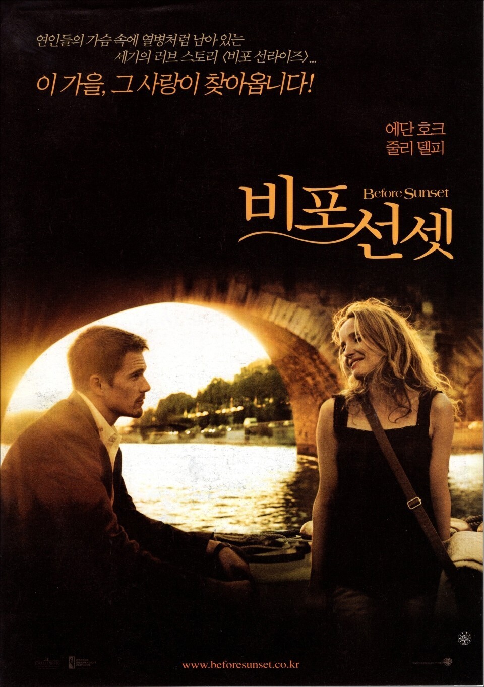 비포 선셋은 2004년에 개봉한 로맨스 드라마 영화로, 에단 호크와 줄리 델피가 주연을 맡았습니다. 감독은 리처드 링클레이터이며, 전작 비포 선라이즈(Before Sunrise, 1995)의 이야기를 9년 후로 이어가는 속편입니다.